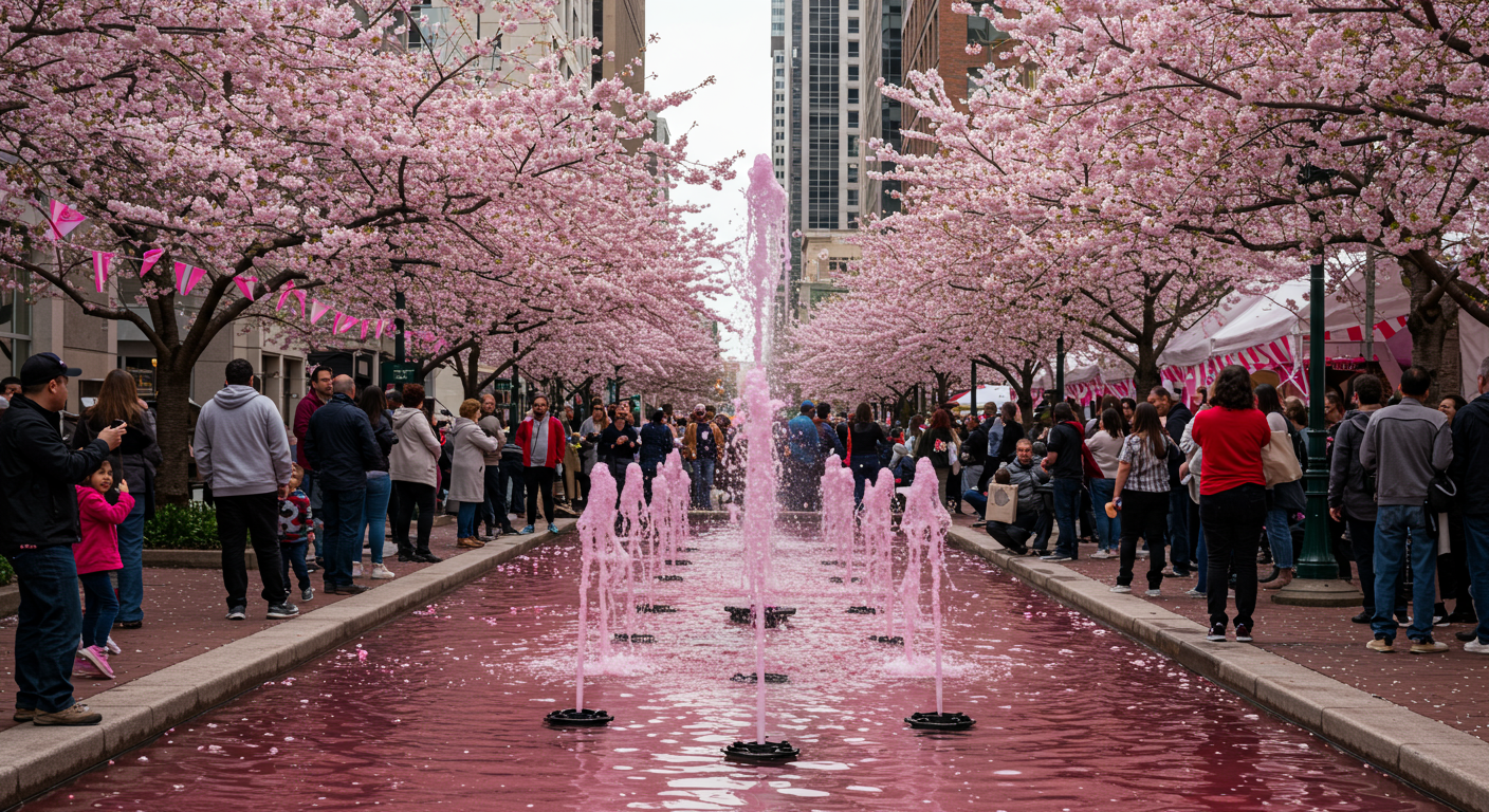 During the festival, fountains in the downtown area turn pink! It's a great spot for a photo-op.